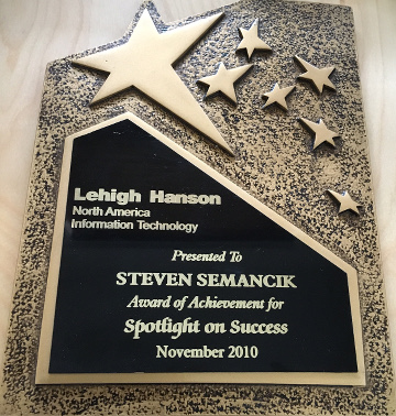 Achievement of recognition for my efforts in consolidation Hanson and Lehigh Materials including datacenter, application and process integration for multiple business lines across North America.
